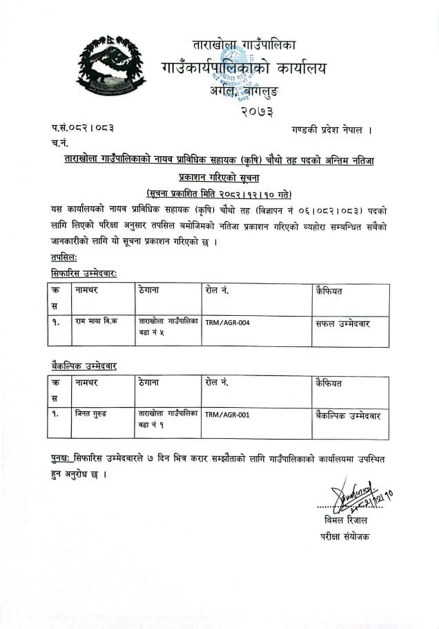 ताराखोला गाउँपालिकाको स्वत प्रकाशन