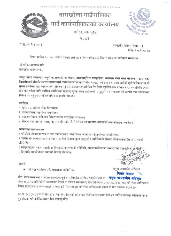 औषधि उपचार खर्च पाउन योग्य व्यक्तिहरुको विवरण संकलन र नवीकरण सम्बन्धमा ।