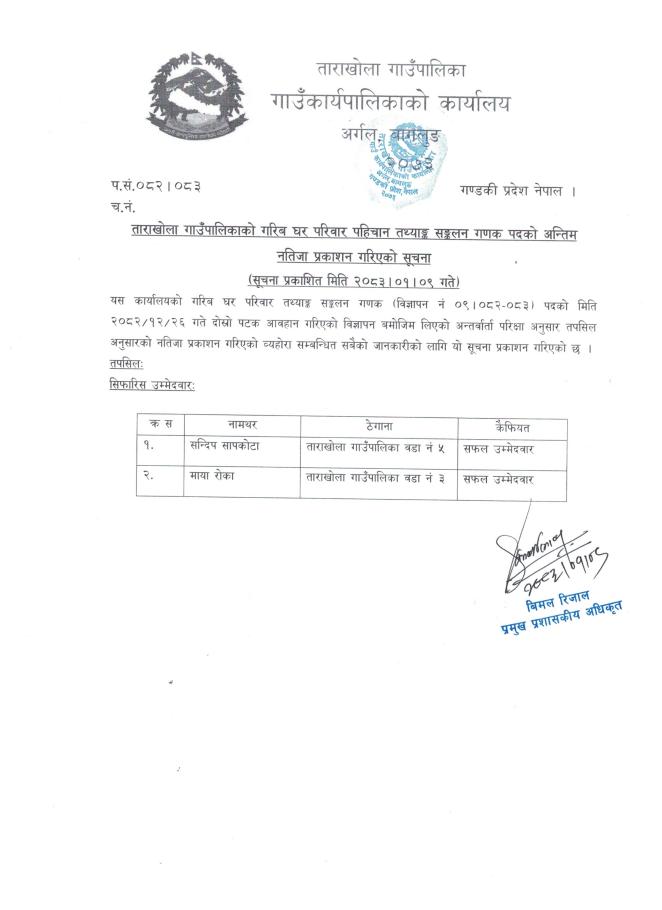 ताराखोला गाउँपालिका, गाउँ कार्यपालिकाको कार्यालय अर्गल बागलुङ गण्डकी प्रदेश, नेपाल