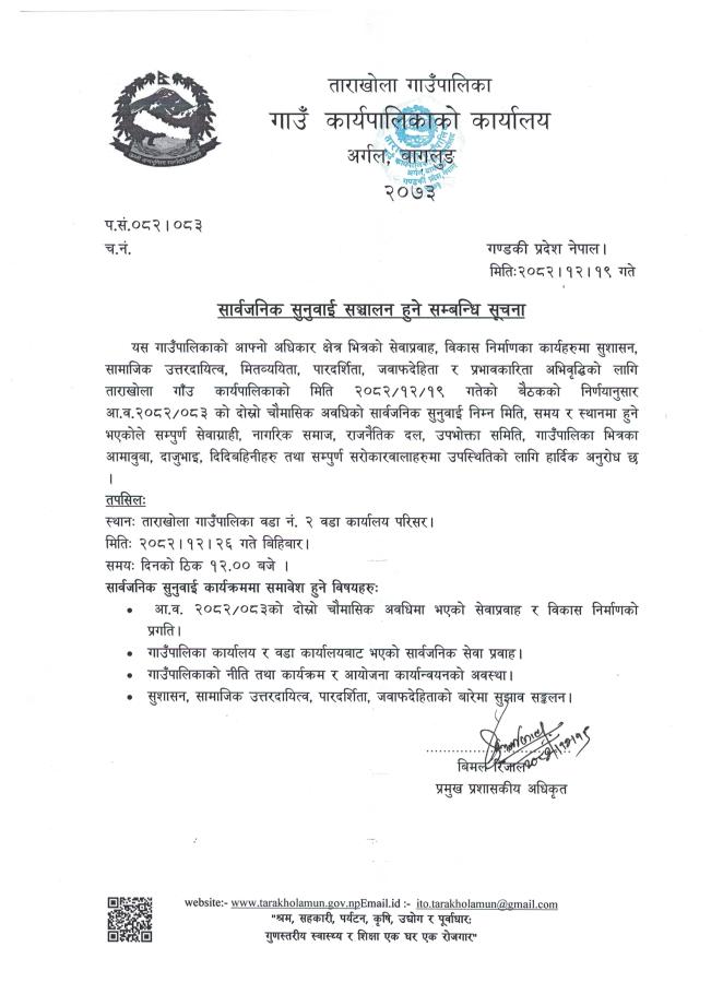 ताराखोला गाउँपालिकाको वार्षिक नीति तथा कार्यक्रम आर्थिक वर्ष २०८२/०८३