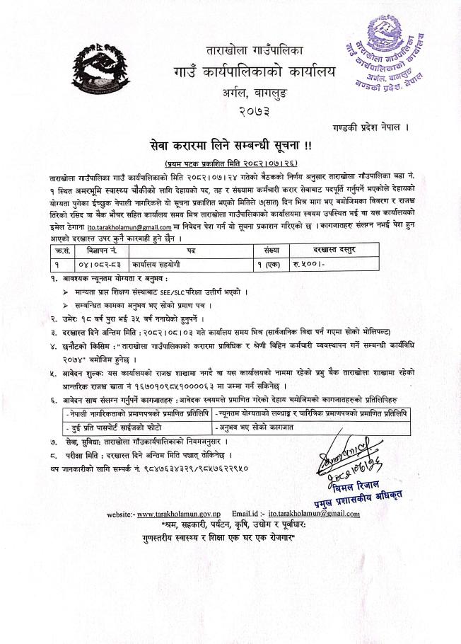 ताराखोला गाउँपालिका, गाउँ कार्यपालिकाको कार्यालय अर्गल बागलुङ गण्डकी प्रदेश, नेपाल