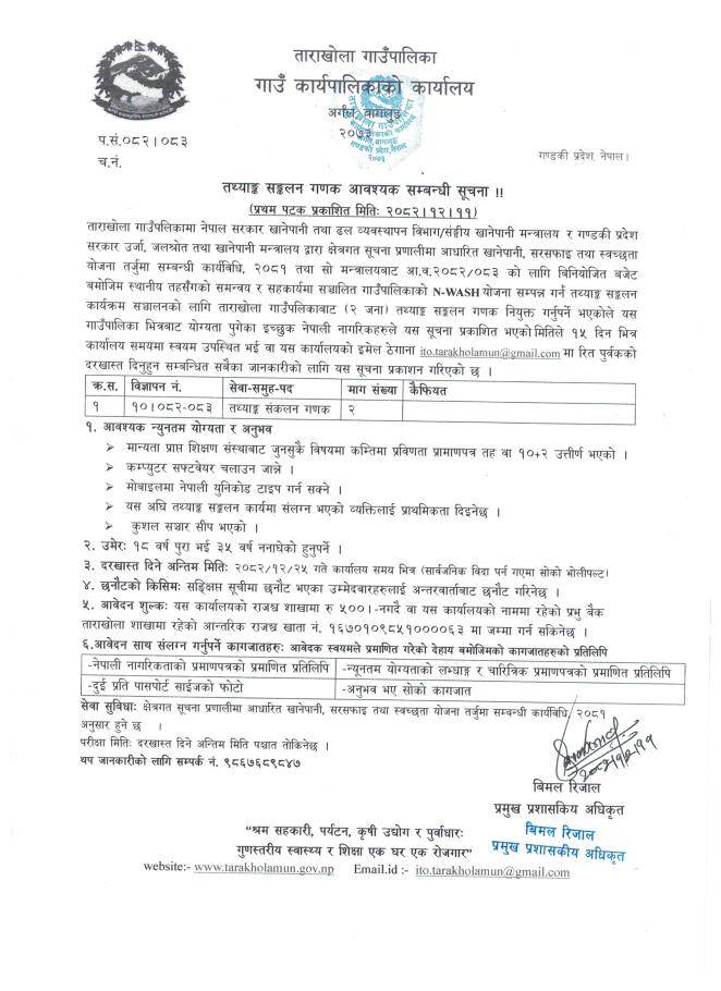 ताराखोला गाउँपालिकाको स्वत प्रकाशन