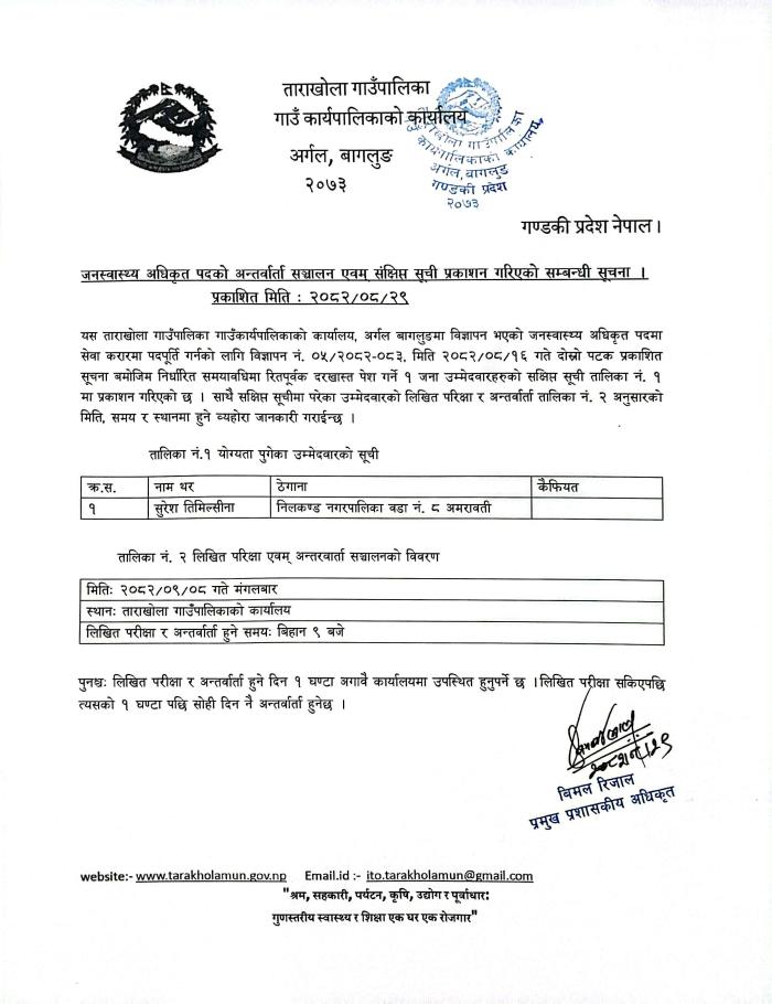 जनस्वास्थ्य अधिकृत पदको अन्तरवार्ता सञ्चालन सम्बन्धी सूचना