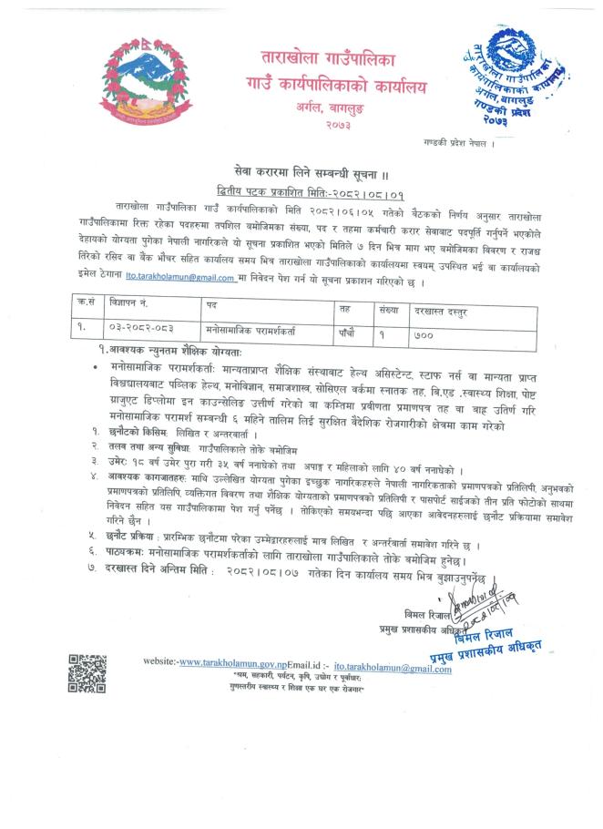 » मनोसामाजिक परामर्शकर्ता करारमा लिने सम्बन्धी सूचना