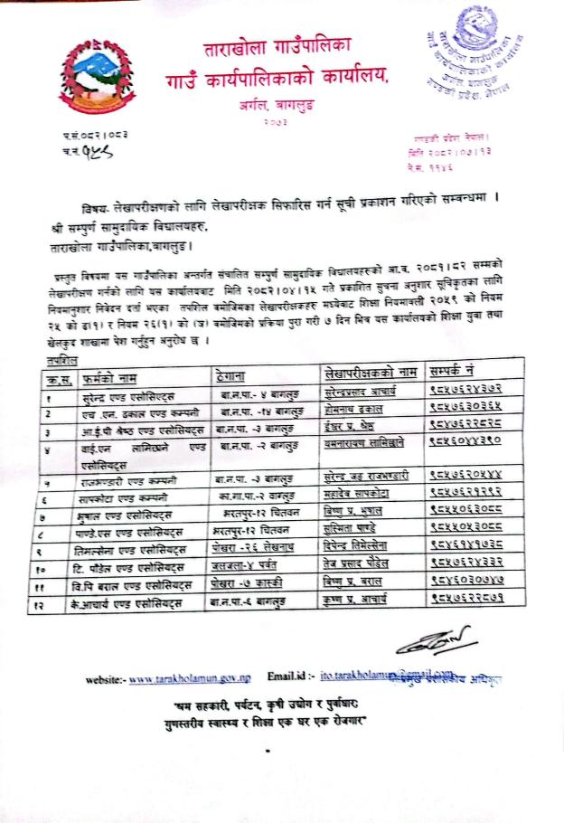 लेखापरिक्षणको लागि लेखापरिक्षक सिफारिस गर्न सुचि प्रकाशन गरिएको सम्बन्धमा |
