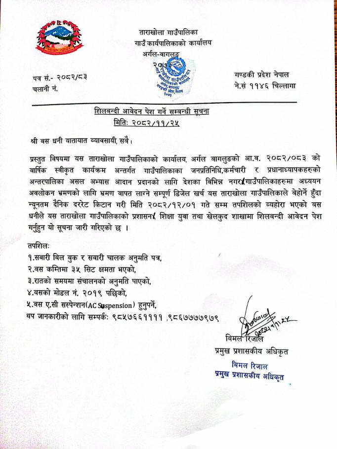ताराखोला गाउँपालिकाको वार्षिक नीति तथा कार्यक्रम आर्थिक वर्ष २०८२/०८३