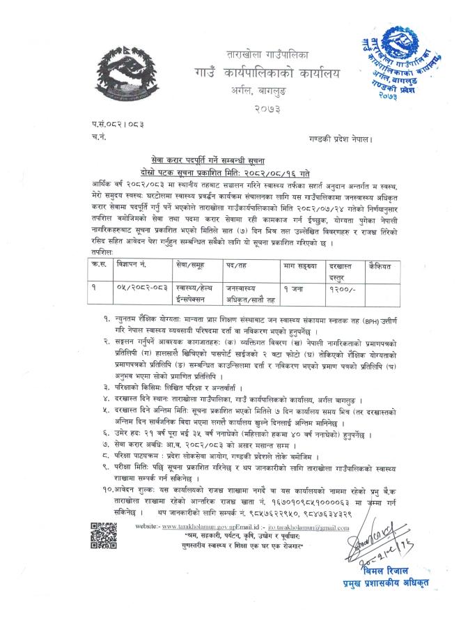 ताराखोला गाउँपालिका, गाउँ कार्यपालिकाको कार्यालय अर्गल बागलुङ गण्डकी प्रदेश, नेपाल