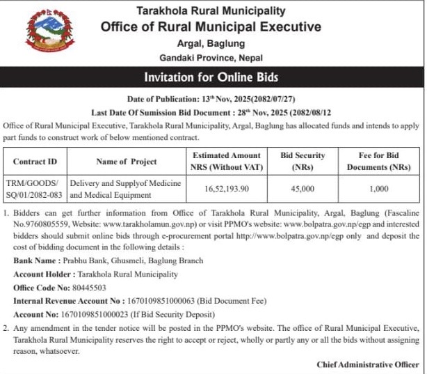 सार्वजनिक खरिद/बोलपत्र सूचना